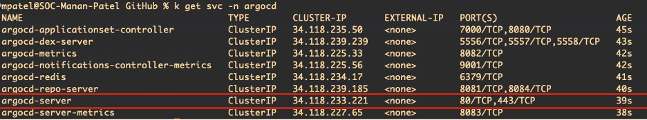 Once the above is applied, we can verify the installation by checking the status of the pods and services in the argocd namespace: