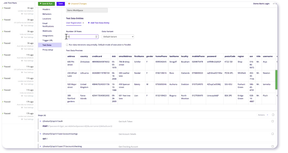 BlazeMeter provides on-demand, compliant datasets for all types of tests—functional, performance, and negative test cases—without manual intervention. Keep your releases on track with immediate, reliable data.